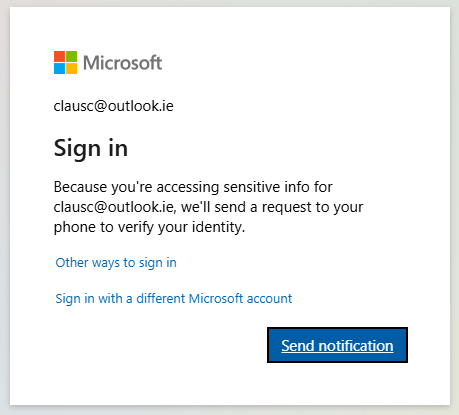 Microsoft will prompt you to verify your identity. You will receive a notification to your phone or other authentication methods to sign in securely. Verify your identity to proceed.