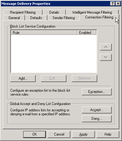 On the "Intelligent Message Filtering" tab, in the Gateway Blocking Configuration please ensure that "When blocking messages:" is set to "No Action" or anything else but not "Reject".